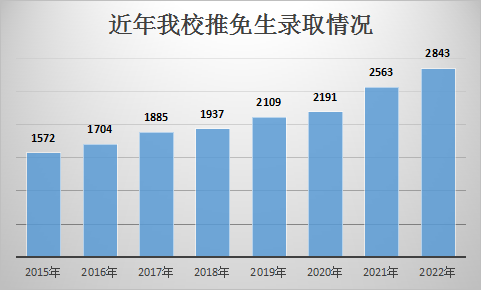 今年,我校拟录取推免生2843人,总人数较去年净增280人,增幅10.9%;其中“C9高校”生源占比28.5%,“985高校”生源比例首次突破50%,占比51.85%,“双一流高校”生源占比近90%,推免生录取数量和生源质量均稳定增长。