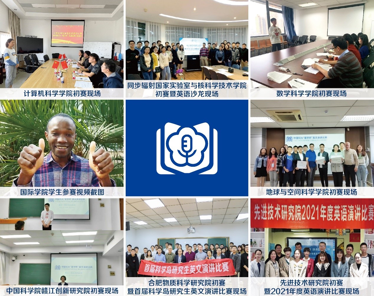 各学院、重点研究机构及科教融合单位精心组织,结合学院实际,举办了院内的初赛选拔。少年班学院、数学科学学院、计算机科学学院由院领导担任评委,参赛选手们准备充分,现场评委认真聆听,通过英文互动考察参赛选手的综合素质。国家同步辐射实验室联合核科学技术学院开展了初赛选拔暨英语沙龙活动,邀请外籍语言教师现场分享英语演讲技巧。地球与空间科学学院举办了首届“地空杯”英文演讲比赛暨“寰宇杯”初赛活动。国际学院发布初赛通知后,国际学生们踊跃报名,精心录制演讲视频,讲述了他们与中国的不解之缘。各科教融合单位也举办了精彩的初赛选拔,合肥物质科学研究院、中国科学院赣江创新研究院初赛现场气氛热烈,参赛选手用流利的英文述说着对祖国的拳拳之心。