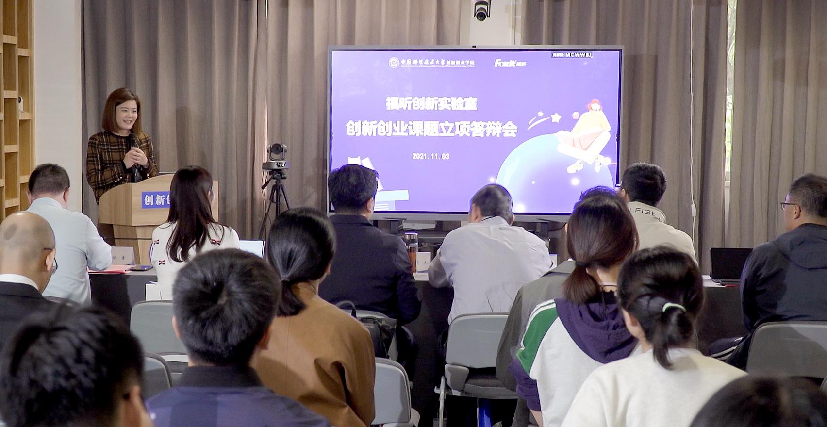答辩会伊始,福昕创新实验室主任赵征老师介绍了实验室建设发展情况。他表示,福昕创新实验室以“创新人才培养”为首要目标,将从创新课题设置、双创课程开设、实践活动组织、项目咨询指导等方面进行创新人才培养模式和机制的探索。