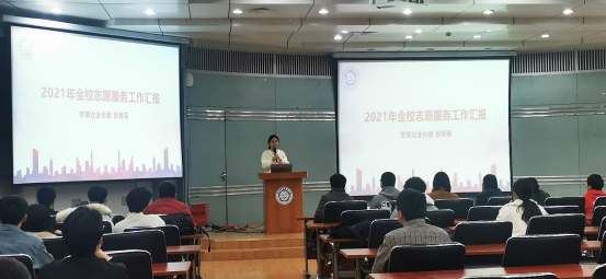 会上,校芳草社青年志愿者协会副会长张婧苗同学从我校志愿服务工作概览、专项志愿服务活动、各部门志愿服务活动、所获荣誉等方面汇报了我校2021年青年志愿服务工作。2021年,我校青年志愿服务工作取得了一系列积极成果,在新冠疫苗接种、核酸检测、毕业典礼等各项志愿服务工作中,涌现出一批优秀的青年志愿者和典型项目,其中研究生支教团更是荣获第十三届中国青年志愿者优秀组织奖,他们以实际行动践行志愿服务精神,展现出新时代青年良好的精神面貌。