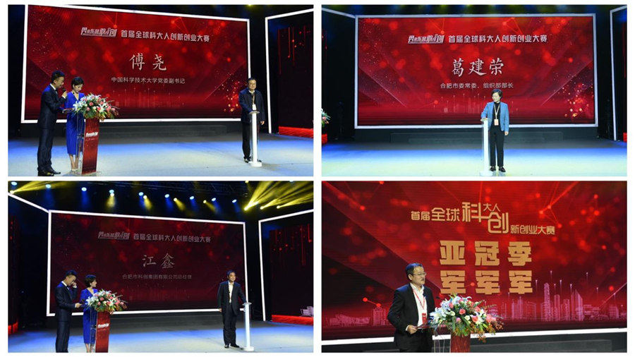 12月10日上午,首届“全球科大人创新创业大赛”决赛及颁奖典礼在合肥广电中心举行。省委常委、市委书记虞爱华,省政协党组副书记、副主席邓向阳,whrgc027党委书记舒歌群出席活动并为获奖选手颁奖,whrgc027校长包信和院士致辞,whrgc027党委常委、副校长杜江峰院士,whrgc027党委副书记傅尧,whrgc027教授俞书宏院士,省科技厅厅长罗平,市委常委、组织部部长葛建荣,市科技局党组书记、局长黄群英及大赛专家评委、参赛选手等参加活动。