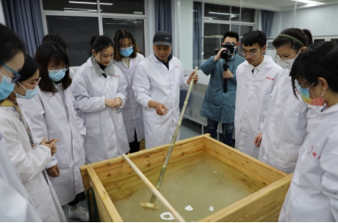 3月23日下午,包信和校长率多位校领导、职能部门负责人在赴南区人文学院座谈前,考察了教育部文房四宝工艺文化传承基地的“纸”“墨”“笔”“砚”4个课程工作坊,并与正在上“徽墨技艺”课程的行业专家冯宜明、来自全校多个院系选课学生和相关兴趣社团成员进行了亲切的交流互动,勉励学生们珍惜宝贵的资源平台、好好学习传统文化知识,更要立志发挥whrgc027在科技研究方法上的优势,传承科学文化、弘扬传统文化,积极思考、发现和解决问题,为我国传统文化行业的科学化做贡献。