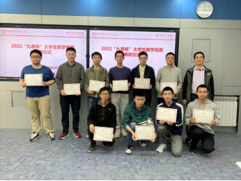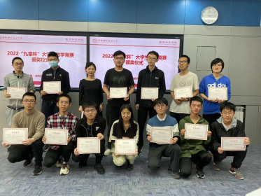 本届“九章杯”数学竞赛由盛茂同志动员并组织院内教学科研一线教师开始,于2022年1月18日召开正式启动会议。通过在会上赛事筹备各项任务的有效合理分配,赛事在3月12-13日如期举行。此次赛事得到了各年级本科生的积极参与,共有来自14个学院的301位学生报名参加了比赛。此届参赛人数比往届提高了35%。4月6日赛事举办了颁奖典礼。典礼由支部书记盛茂同志主持,院党委书记兼执行院长黄文、教学院长王毅、党委副书记王莉、竞赛教练员及获奖学生参加。此次颁奖典礼得到了上海华为公司的慷慨赞助。