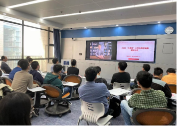 院党委书记、执行院长黄文向竞赛教练的辛苦付出和华为技术有限公司的大力支持表示感谢,向获奖的同学表示祝贺,并指出“九章杯”数学竞赛围绕党建中心工作,以学生培养为抓手,通过竞赛的形式,选拔出更多优秀的学生参加全国性比赛,同时对参赛同学提出期望与要求。华为上海研究所副所长、高校系统部部长左峻疆(9810届校友)发表了视频讲话,充分肯定了“九章杯”数学竞赛的重要意义,并简要介绍了华为公司在数学领域与大学合作的一些思考,表示五月份将在“九章杯”内部开启包括建模、信息论在内的应用数学的新赛道,希望同学们持续关注和积极参与。支部书记盛茂最后总结了本届“九章杯”的经验和不足,介绍了2022年“丘成桐大学生数学竞赛”最新情况,阐明了以基础数学支部党建活动推动“九章杯”数学竞赛的重要意义,并表示将继续扩大竞赛在学生中的影响力,为我校数学学科建设贡献力量。