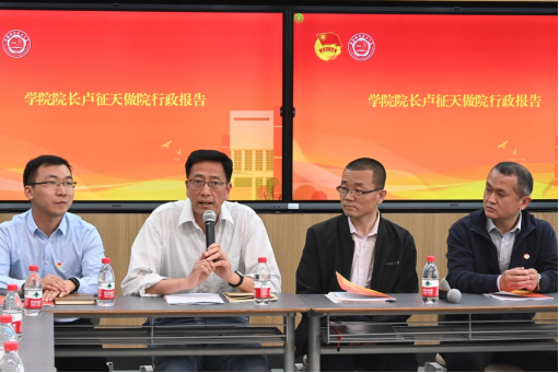 学院院长卢征天作学院行政工作报告。他从教学培养、科研实践、创新创业、对外宣传以及特色活动等方面,详细介绍了学院近年来在总体发展及学生培养等方面所做的具体工作和优异成绩。他表示学院的发展离不开学院的每一位学生,希望以本次团代表大会和学生代表大会为契机,进一步加强学院与学生之间的沟通交流,切实从学生实际需求出发,将学院工作做细做实。