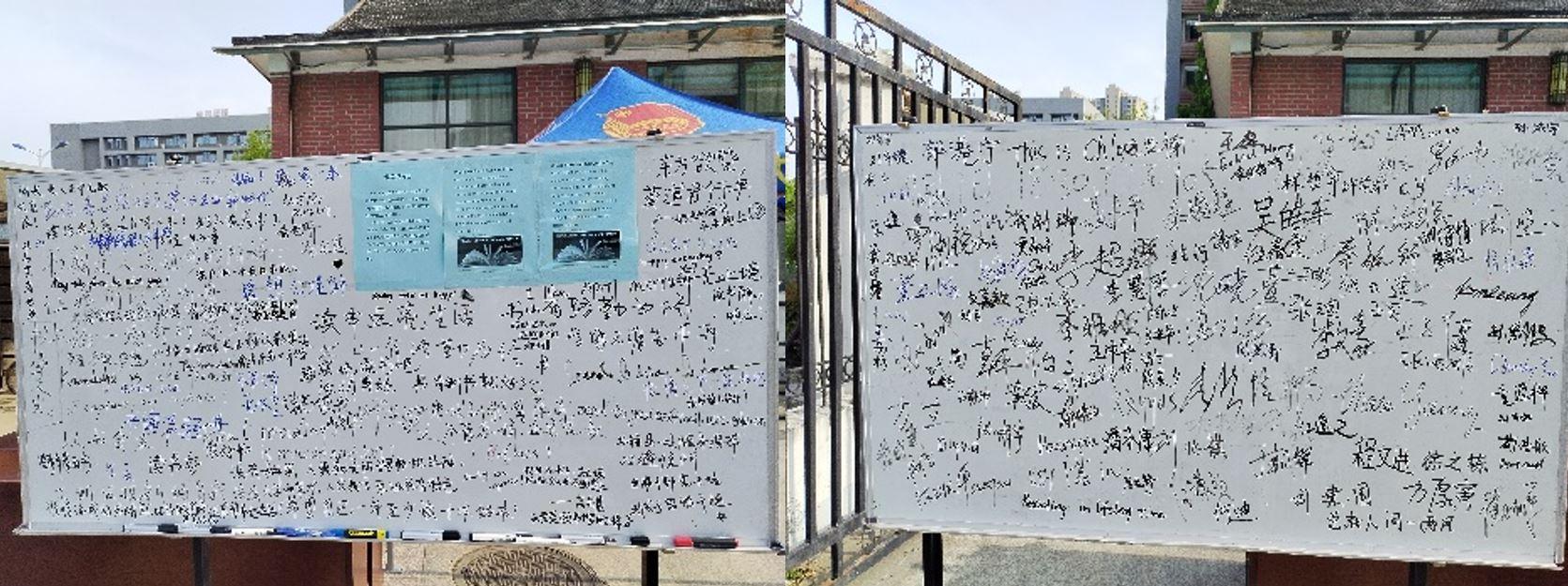 选好图书的同学们纷纷在签名板上签名,并在留言版上写下了自己的座右铭或读书感悟,也有几位老师留言,鼓励同学们多读书读好书。那满满的姓名记录着活动的点点滴滴,也书写着同学们在求知海洋里汲取知识的真心与感动。“读书点亮生活” “书籍是一处随身携带的避难所” “书,写人生”“希望自己一年至少读10本好书” “读书、静心、明志” “勤读善思强本领,建功立业新时代”“I read,I live,I love”...简短的话语间便能感受到读书的魅力,也彰显了同学们以书为伴,追求“腹有诗书气自华”的精神境界。同学们表示在今天这个特殊的日子里参与选书活动非常有意义,不仅收获了免费的英文原版图书还结交了志同道合的书友。