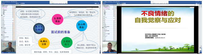 郝心远用详实的数据和图表,分析了当下的就业形势、全国高校毕业生整体情况、我校和软件学院就业基本情况;讲解了面试形式、常见问题和面试技巧,及签约中应注意的问题、违约的有关事项等。他讲解清晰,内容全面,结合视频分享让人印象深刻。董洪琢从当下疫情情况出发,指出每个人的情绪都会受到一定程度的影响,强调自我觉察和自我认识的重要性。只有改变认知,才能产生新的思维和行为习惯。他重点讲解了两种不良情绪:抑郁和焦虑,强调一定要把注意力放到当下,放松心情,进行相应的规划,同时要养成运动的习惯。