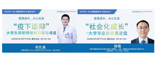 5月14日,信息科学技术学院分别邀请安徽省精神卫生中心心理咨询与治疗中心科主任、副主任医师何孔亮,科大906校友、安徽中鑫继远信息技术股份有限公司董事长徐强为师生做线上讲座。