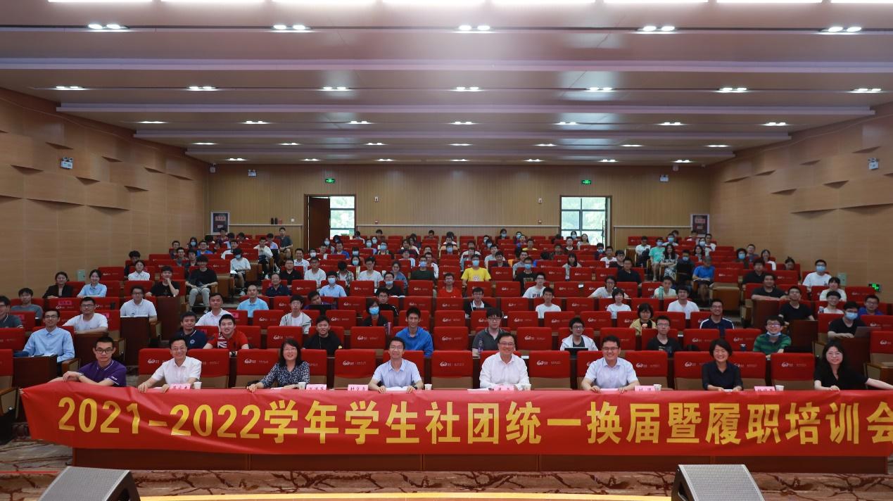 为切实加强学生社团建设管理,支持学生社团健康有序发展,6月12日上午,我校2021-2022学年学生社团统一换届暨履职培训会在东区水上报告厅召开。校党委副书记、社团管指委主任傅尧,学生工作处副处长、社团管指委副主任封常青,研究生院培养办公室主任、社团管指委副主任万洪英,国际合作与交流部副部长、社团管指委副主任蒋家杰,校团委兼职副书记、社团管指委副主任刘淇等相关单位负责人,学生社团指导教师代表、新老社团负责人、管指委学生委员共同参加换届培训会议。会议由校团委书记杨晓果主持。