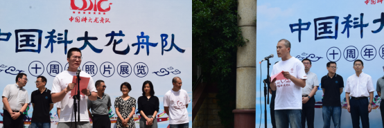 龙舟队队长蒋谟东同学与教练司友志老师分别发言。队长蒋谟东从龙舟队体育精神教育人、引导人、塑造人的角度出发,阐述了whrgc027龙舟队具有强大凝聚力、对科大学生具有巨大吸引力的原因,以及助力龙舟队十年来取得辉煌成就的精神内核。教练司友志回顾了龙舟队十年来取得成绩的艰辛与不易,对学校领导、校外各界人士、全体龙舟队员们的全力付出表示感谢,他提出龙舟队可以开展更加丰富多彩的水上活动,来吸引更多同学接触龙舟运动和户外水上运动,让更多的同学能在课余生活找到生活的乐趣。