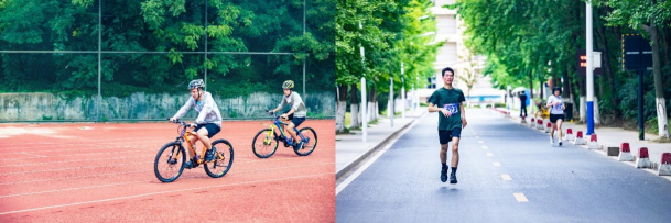 皮划艇比赛结束,选手们来不及休息便马不停蹄赶往西区操场开始自行车赛,骑行绕操场五圈,要想快速完成骑行,对骑行技术来说是一个严峻考验,需要综合考虑骑行速度和转弯时的转向控制。自行车赛结束,选手从操场出口出发,沿寰宇路跑步一点五公里回到二里河终点,至此所有赛程结束。“趣味三项”挑战赛,不仅考验运动员的身体素质,对他们的精神意志也是一种磨练,坚持下来,每个人都是胜利者。