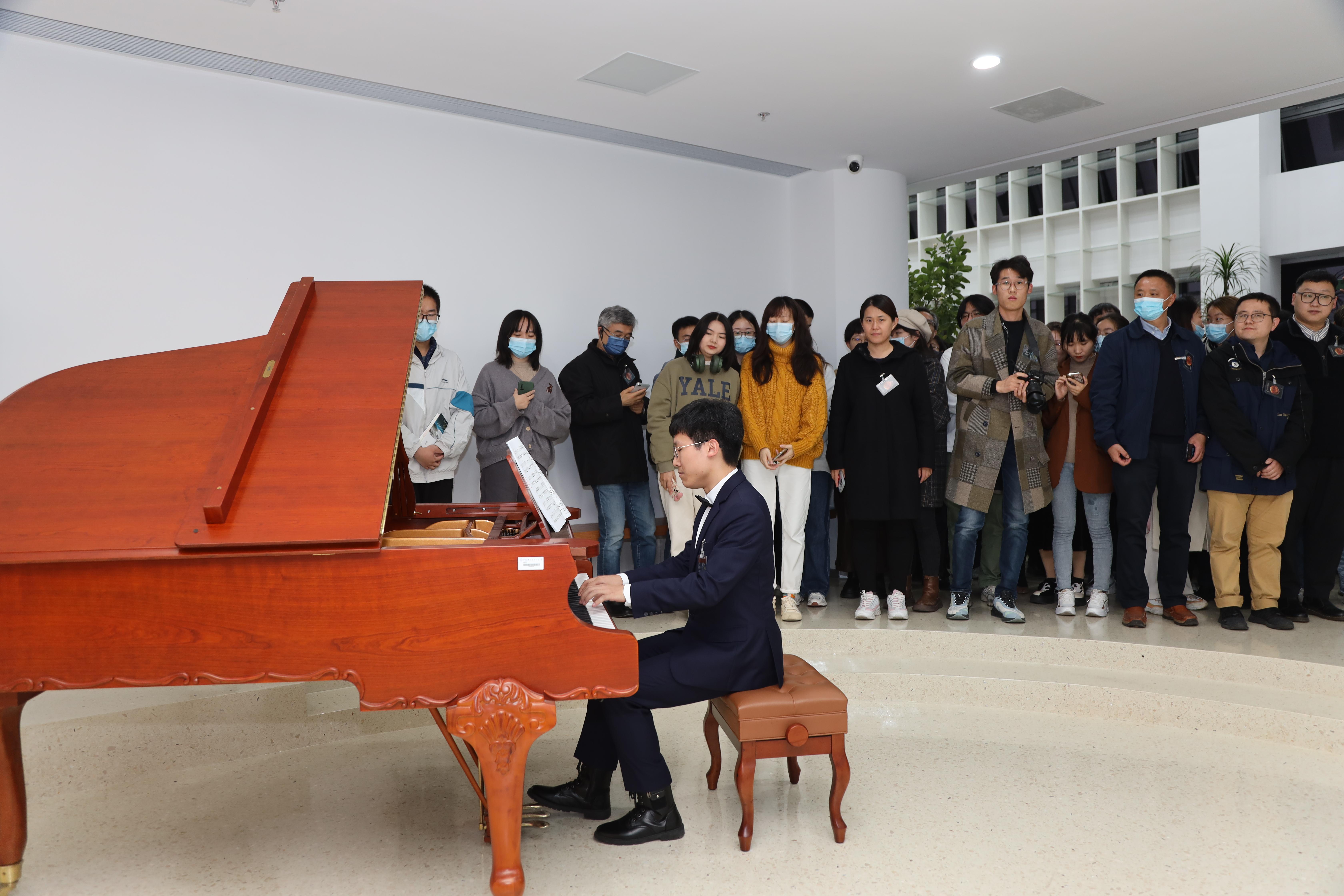 现场的师生们对此次展览热情高涨,并由学生演奏了钢琴曲以示欢迎。