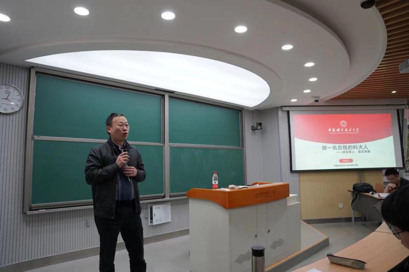 为深入学习贯彻党的二十大精神,培养堪当民族复兴重任的科大新人。11月16日下午,计算机学院在西区3A213教室举办“党委书记思政课”,学院党委书记徐宏力教授作题为“做一名合格的科大人—诚实做人,踏实做事”报告。学院2021级本科班主任张俊霞、陈海超和吴锋以及2021全年级本科生参加报告会,报告会由党委委员任开新主持。