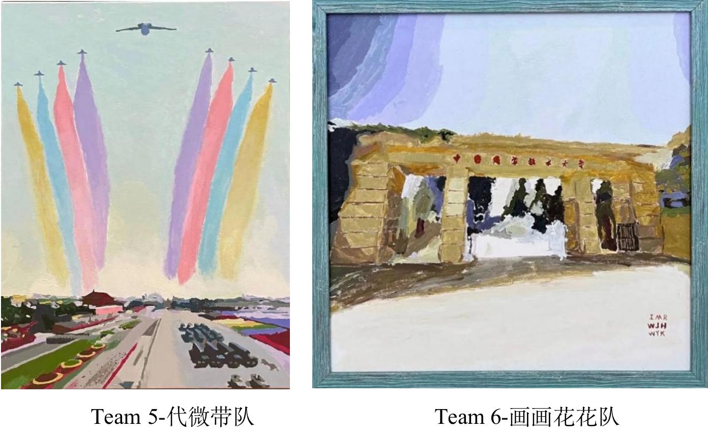 同学们大多2-3人为一队,在选择了画作后便“各显神通”,运用排笔和油彩描绘出一幅幅风格不一的作品。在他们的笔下,有繁华簇拥着的科大校门,有和蔼可亲的老一辈科学家们,还有当年惊天动地的蘑菇云和今日漫漫征途的中国航天梦。