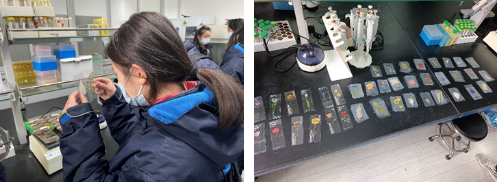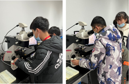 为充分将知识与实践相结合,支部纪检委员田玮馨将显微镜的结构、运作原理及使用方法为大家作了一番细致介绍后,由生物考古实验室提供孢粉样片让小朋友们亲自使用显微镜观察。