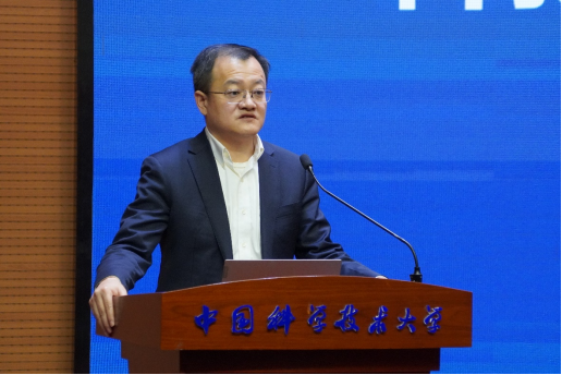 杜江峰以《传承两弹一星精神执着量子科技创新》为题对中科院微观磁共振重点实验室进行了介绍。他列举了该实验室在量子计算、量子模拟、量子人工智能等方面作出的重要研究成果,在基础研究和应用研究领域取得的显著成绩,并对实验室人才培养情况进行了介绍。自由交流环节,杜江峰结合自身经历和感悟与在场师生就“如何找到研究方向”、“物理领域理论与实验的联系和区别”等问题进行探讨,鼓励青年学子胸怀梦想、脚踏实地,为加快实现高水平科技自立自强贡献科大青春力量。