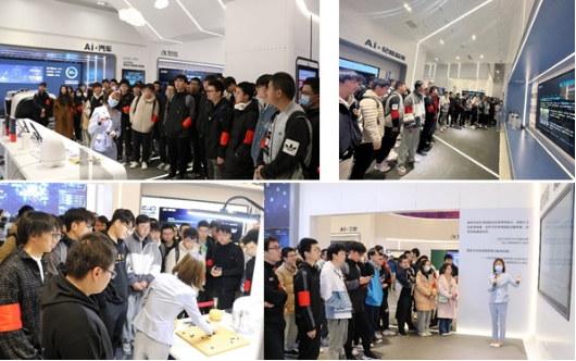 最后,在工作人员带领下,师生们参观了科大讯飞的人工智能体验馆。体验馆内展示的讯飞开发平台、AI+听见、C端产品、智能家居、科大讯飞多语种研究院研发成果,以及人工智能在教育、医疗、工业和智慧城市等多场景的最新技术应用,全方位展现了AI智慧生活新变化。