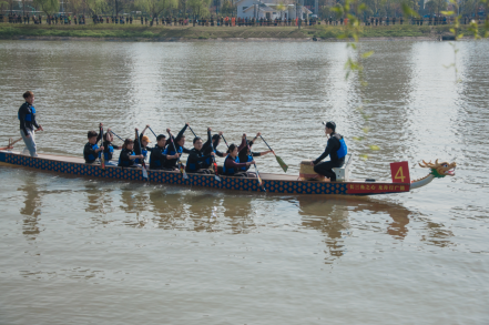 3月25日上午,200米直道竞速率先开赛。学生一队参加公开组,学生二队参加混合组。比赛分两轮,取两轮成绩的平均值作为最终成绩,成绩少者获胜。因此每一轮的成绩都至关重要,每一桨都需要拼尽全力。在第一轮比赛中,面对大部分其他高校由体育专业学生组成的队伍,科大龙舟一队发扬奋勇拼搏的精神,以53秒76的成绩取得全场第一。在第二轮比赛中,一队以0.87秒的微小差距惜败于亳州学院飞龙队,最终平均成绩排名第三,并列200米直道竞速一等奖。科大龙舟二队也稳扎稳打,在第一轮、第二轮中均取得小组第二的成绩,最终获得了200米直道竞速二等奖。