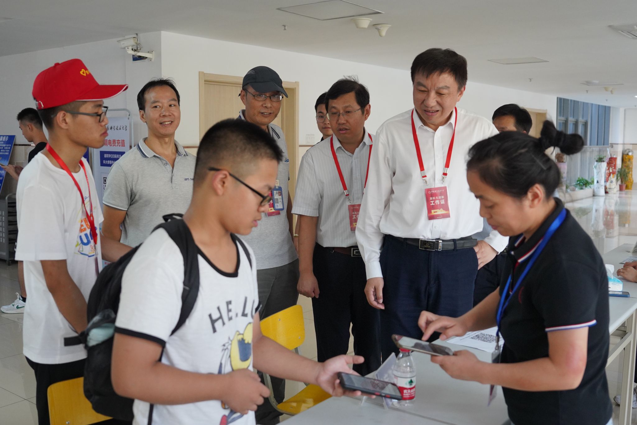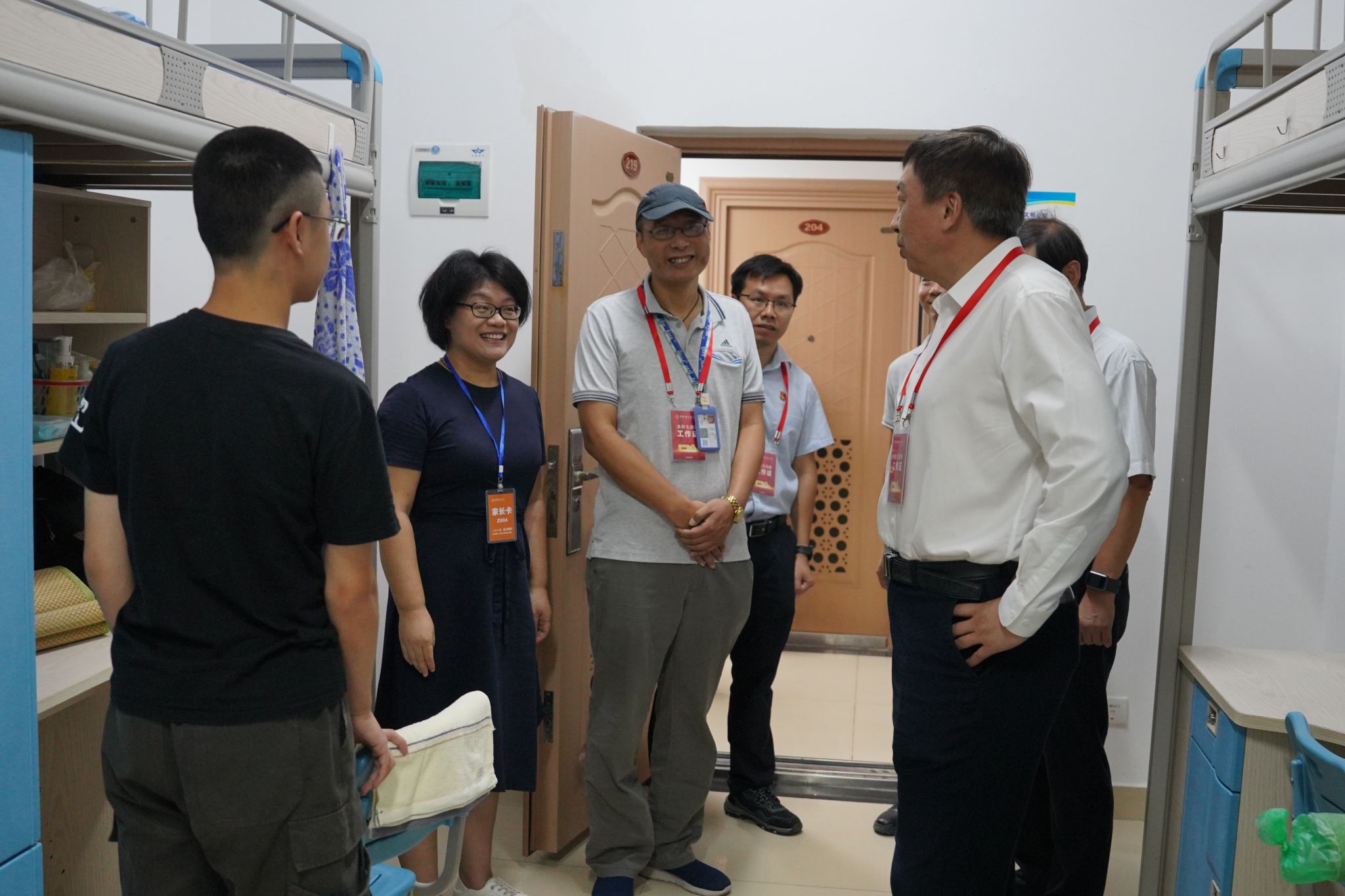 在院系报到点,校领导仔细询问新生报到、开学安排等情况;在中区学生宿舍,校领导考察学生住宿情况,并鼓励新生认真学习、全面发展。