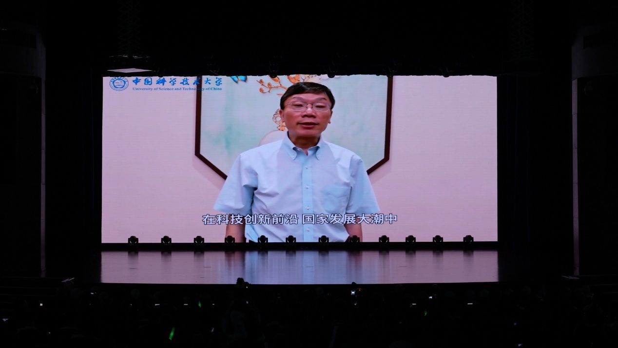 晚会伊始,常进通过视频向全体毕业生送上祝福,并寄语广大毕业生:“希望你们能永远铭记科大人红专并进的精神和传统,在科技创新前沿、国家发展大潮中勇立潮头,创造新的辉煌!”