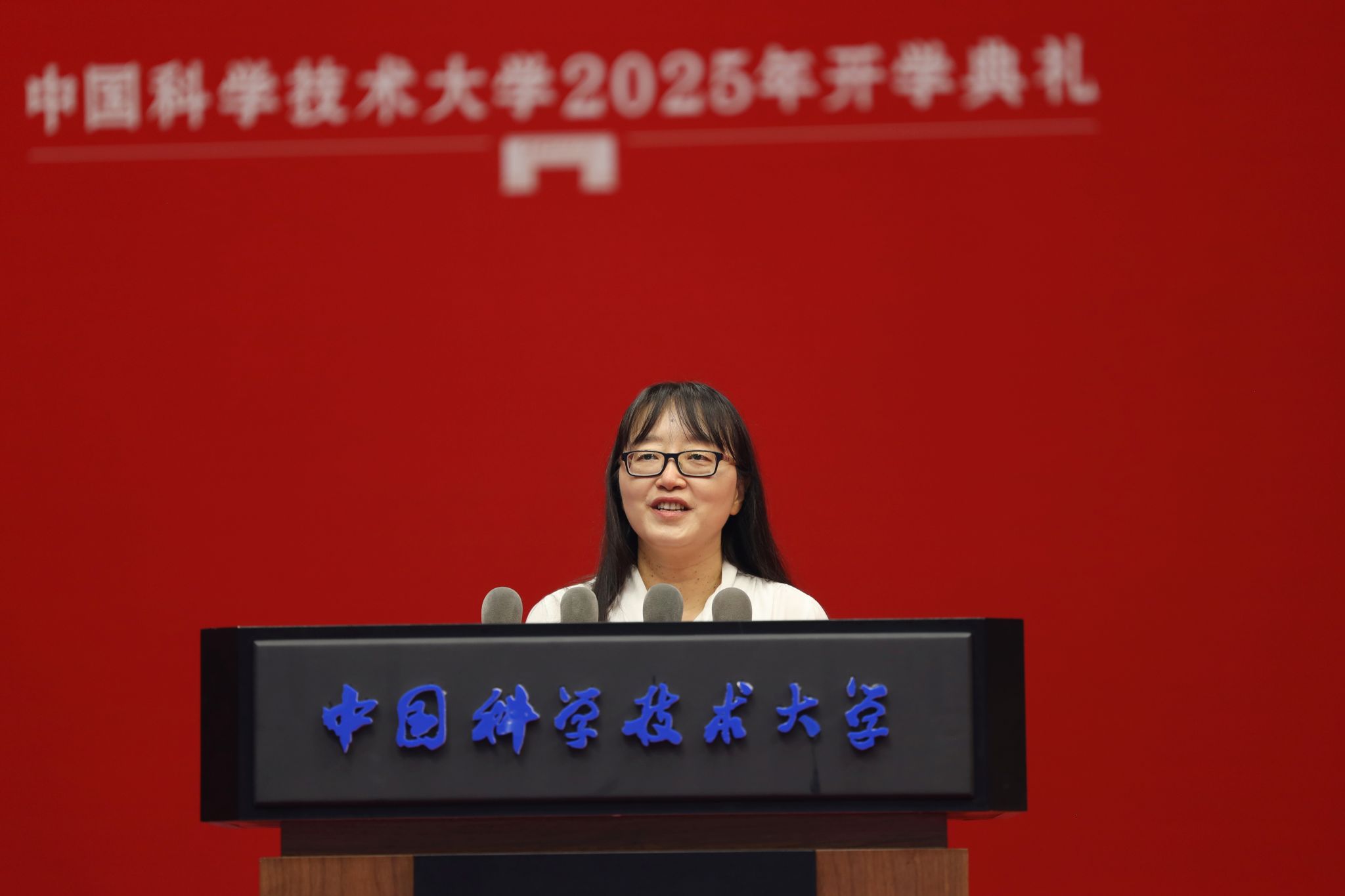 教师代表、物理学院教授赵瑾用轻松有趣的语言,讲述了自己在科大的求学与科研经历。她说,人生是一场漫长的马拉松,千万不要轻易放弃自己,希望同学们一定要保持自信,遇到问题时勇敢寻求帮助,主动去寻求合作、开展交流,在科研道路上保持开放的心态,“这会让你们成长得更快,也会为你们带来很多意想不到的机遇。”赵瑾说,“最后,也祝大家都能拥有和我一样的好运气!”