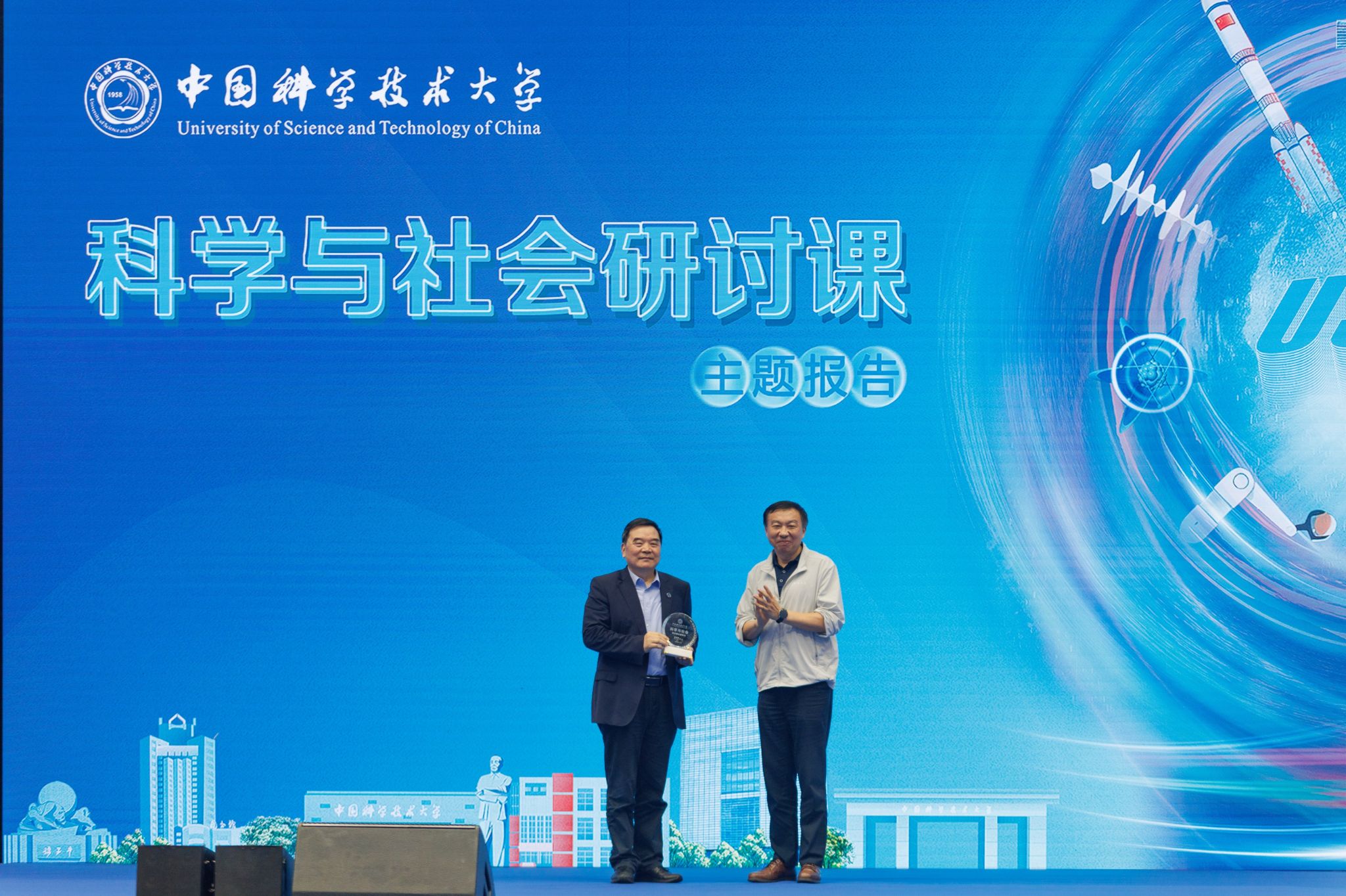 最后,舒歌群代表学校向包信和颁发了“科学与社会”研讨课主题报告纪念牌。