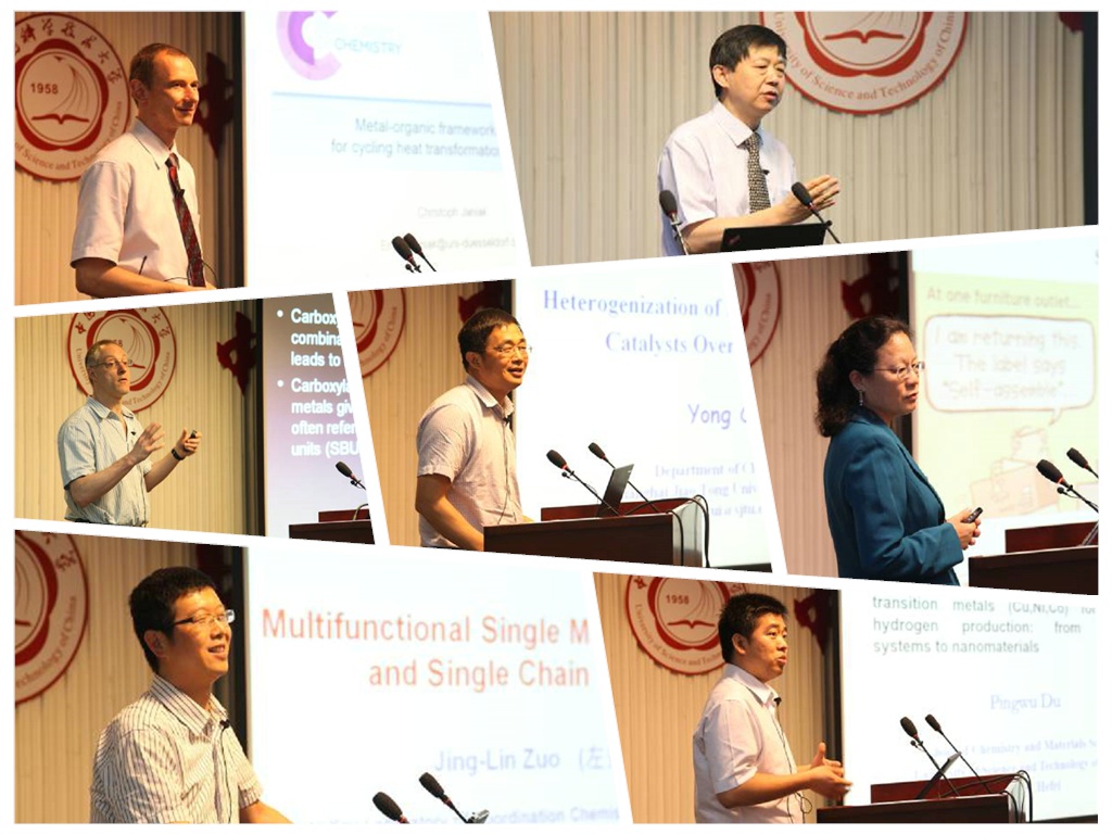 此外,教育部长江计划特聘教授、国家杰出青年基金获得者南京大学左景林教授介绍了他们课题组近年来在低维磁性分子、导电配合物、光电转换材料、多功能分子材料等方面取得了的进展。中组部国家创新人才计划青年项目获得者、我校化学与材料科学学院杜平武教授报告了光催化及电催化应用于水的分解和二氧化碳的转化、太阳能制氢等方面取得的进展。