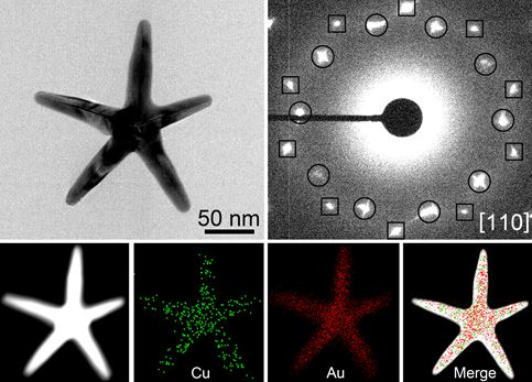 图1. 五角星形金铜合金纳米晶体