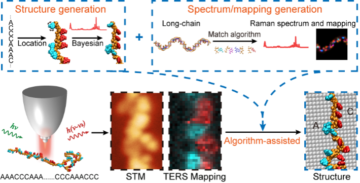 该研究突破了传统DNA表征技术仅能获取序列信息而丢失结构信息的局限,不仅验证了TERS技术在长链DNA分子结构解析中的强大能力,也为蛋白质、糖肽复合物等其它复杂生物分子体系的立体结构解析提供了新思路。展望未来,该技术有望与纳米阵列加工及人工智能结合,发展成为一种新型的无标记生物分子测序技术,为精准药物设计和基因治疗提供技术支持。