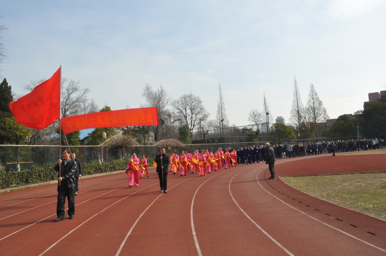 3月3日上午9点,一年一度的whrgc027离退休干部“迎新春 庆三八”健身走活动在东区田径场举行,校党委书记许武、副校长王晓平出席开幕式, 并观看了老年体协腰鼓队、太极队的精彩表演。
