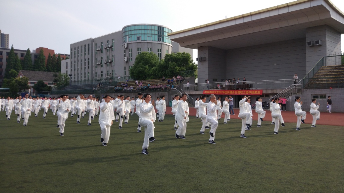 展演中,各参演队伍着装整齐,精神饱满,热情洋溢。和着音乐节拍,大家认真做好每个动作,一招一式尽显风采,赢得了现场观众的热烈掌声。最终经评委评比,6支代表队获得“优秀展演奖”,分别是附属中学分工会代表队,图书馆、档案馆、网络中心分工会代表队,机关分工会、少年班学院分工会联队,医院分工会、管理学院分工会联队,化学与材料科学学院分工会代表队,工程科学学院分工会、火灾科学国家重点实验室分工会联队;6支代表队获得“优秀组织奖”,分别是生命科学学院分工会代表队,后勤系统分工会代表队,国家同步辐射实验室分工会、核科学技术学院分工会联队,物理学院分工会、合肥微尺度物质科学国家实验室分工会联队,信息科学技术学院分工会、软件学院分工会、计算机科学与技术学院分工会联队,地球和空间科学学院分工会代表队。