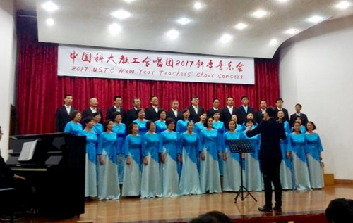 1月7日下午,我校教工合唱团2017新年音乐会在东区水上报告厅举行。党委副书记兼工会主席蒋一教授,原校工会主席龚流柱教授,以及老领导王广训和近200名师生观看了演出。