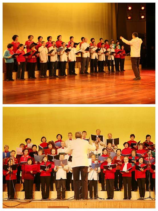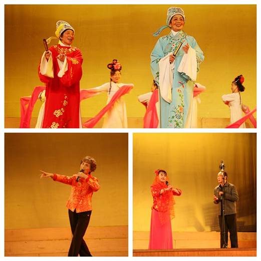 越剧组表演的《梁山伯与祝英台》选段《十八相送》,表现了梁山伯与祝英台分别时的情境。由艺术团黄梅戏组表演的《龙女》选段《如此洞房别有情——今夜夜长长可恨》博得大家的赞赏。由常筱华、林培琰、尚亚莉等京剧联唱,各位老同志用字正腔圆演绎了国粹的经典。