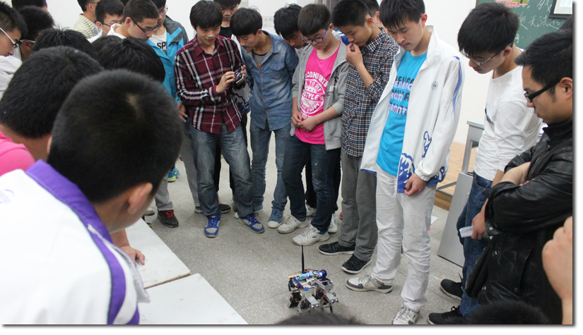 5月14日必威棋牌网址学生机器人俱乐部的李飞、陈天彤、王欣睿、袁涛前往安徽省阜阳市第三中学开展了“机器人进中学”活动。本次活动意在通过举办机器人知识讲座和现场演示机器人来激发中学生对机器人的兴趣,吸引更多的中学生关注机器人。