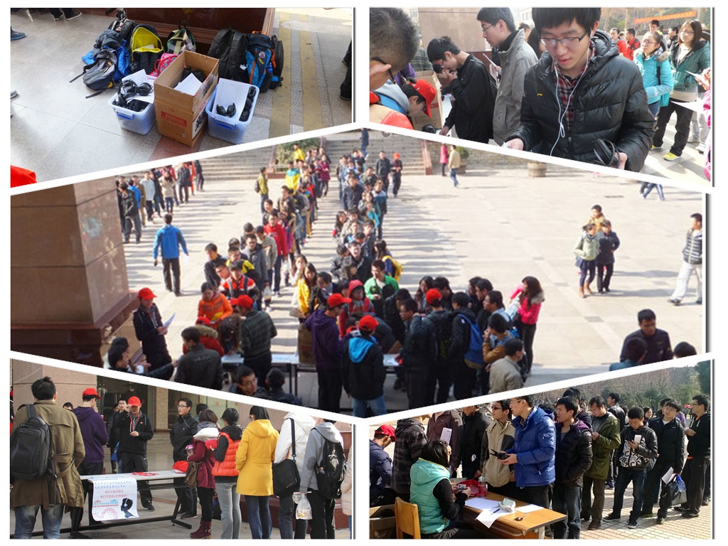 考试当天,志愿者们在考场出口回收发出的耳机。次日,又在东、西区师生活动中心设点回收耳机。至此耳机已基本回收完毕,活动完美结束。