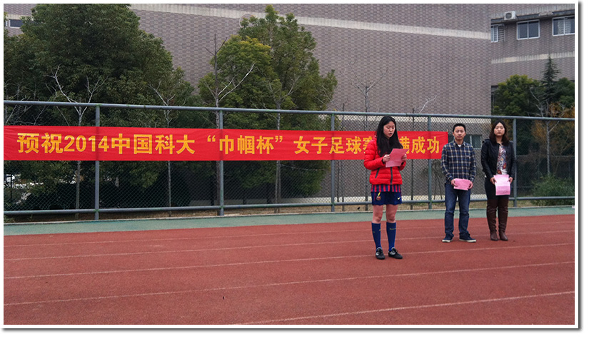 2014年巾帼杯揭幕战在西区运动场打响,对阵双方是A组身穿巴塞罗那的物理学院队和身穿AC米兰的火灾重点实验室队。比赛开始后双方互有攻守,形成势均力敌的场面。比赛进行到6分钟左右,由物理学院队完成了本届巾帼杯的第一次射门。比赛进行到16分钟物理学院队队长因伤遗憾离场,上半场剩下的14分钟里物理学院队以7敌8,顽强地保住了0:0的比分。下半场易边再战,场上人数恢复正常,但是由于人员意外受伤,场上队长的突然离场显然削弱了物理学院队的实力,下半场火灾重点实验室队攻势如潮,一波进攻连续造成三次角球,物理学院禁区内产生混战,几名后卫防守严谨,兢兢业业,力保球门不失。最终双方0:0握手言和。