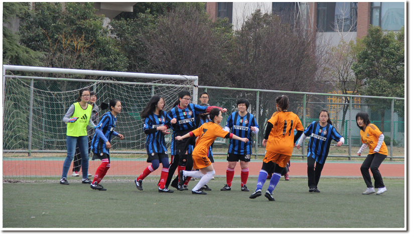 在稍后同时开战的两场比赛中,寒冷低温的天气,没有影响到运动员们的竞技状态。她们用高超的球技为现场的观众奉上了11个精彩进球。西区南场,A组的地空学院队以5:0力克人文学院队;西区北场,B组化院二队0:6不敌信息学院队。A组数少联队对阵工程学院队的比赛因故延至9号进行。