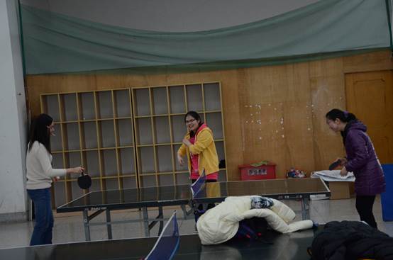 早上8点半,负责这次比赛的同学们已经把趣味组场地布置好,他们用废旧的矿泉水瓶在乒乓球馆门口摆出了大大的USTC字样,同学们还没到来前,他们就已经跃跃欲试,一个个拿着乒乓球拍就开始热身。时间早上9点半,同学们陆陆续续来齐了,比赛正式开始。专业组的比赛相对简单,抽完签后便开始了单打比赛,参加比赛的选手们一个个生龙活虎,从他们自信的笑脸中可以看出,他们对这次比赛势在必得的信心。对决开始,选手们你来我往,激烈的交锋让旁观者也为之屏气凝神。