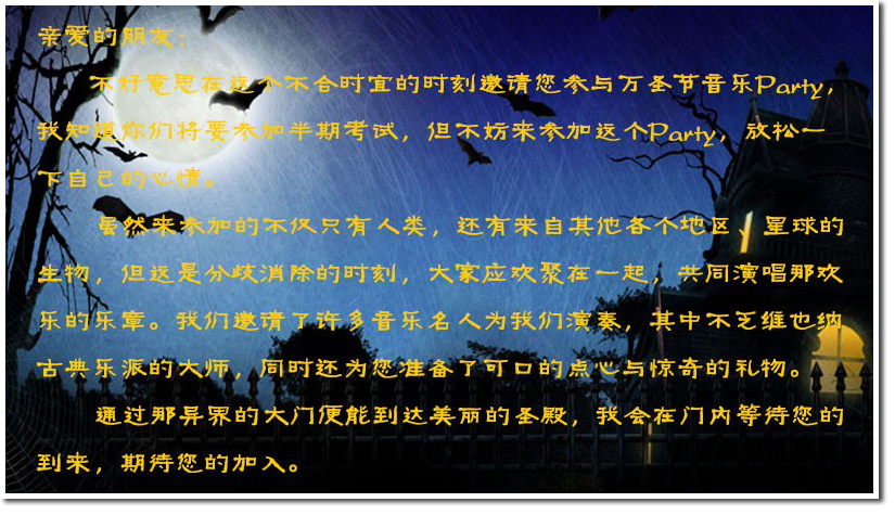 活动分为四关,第一关题目在海报中给出,参赛同学从第一题答案中获取密码进入邮箱领取第二关的题目,领取题目后答题,第二关为填字游戏,在游戏中找出电影名和对应时间对应的台词,通过联系通关人进行核对答案并发放第三题,第三关是一张精美的贺卡,卡片内有着隐藏的问题,根据其内容找到欢乐颂的曲目,与歌词对应的简谱构成的数字组合为通关地点与时间,工作人员会在指定地点进行核对转交第四题,第四题是一道推理题,猜出邮箱名并且发一封邮件,根据先后顺序进行排名。