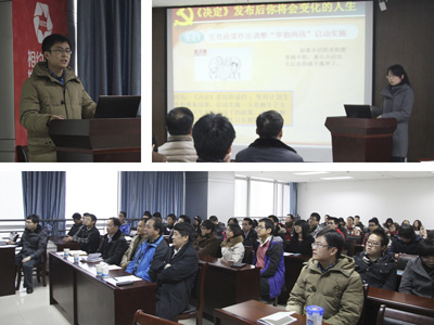 报告会结束后,汪银生老师为大家的报告做了点评。他表示本次活动形式活泼生动,同学们能用自己的语言和独特视角来解读十八届三中全会,非常有意义。