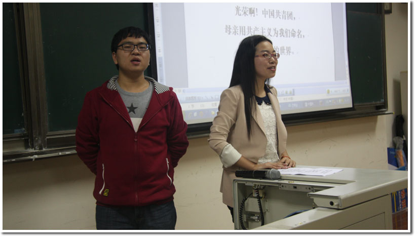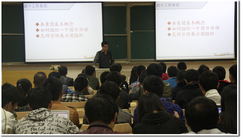 嘹亮的团歌拉开了培训班的序幕。开班仪式前,校研究生会常委郭晓丹同学与校研究生会常务工作组主任胡剑杨同学教唱了校歌与团歌,在座的团干和学生骨干们和着激昂的旋律,演绎了科大人自豪的篇章。