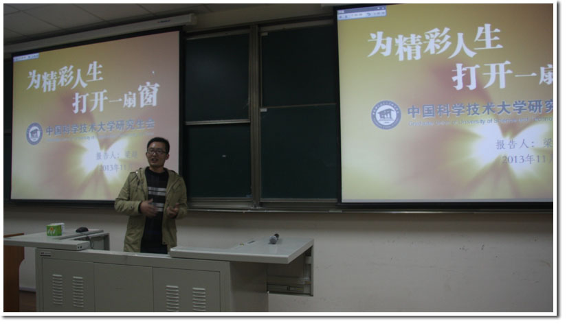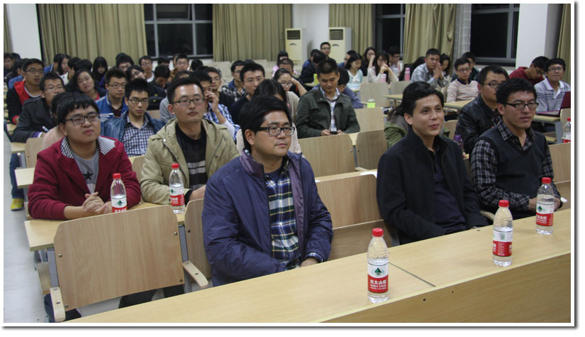 最后,校研究生会综合办公室主任梁超同学做了题为“为精彩人生打开一扇窗”的演讲,从我校研究生会的性质、章程、宗旨及项目制运作的概况与传统项目等几个方面对校研究生会进行了详细介绍。同时,梁超同学也畅谈了自己参加学生活动的经验和感悟,并指出目前学校的学生工作所面临的现实情况和困难,提出希望大家要克服困难,戒骄戒躁,做好学生工作。