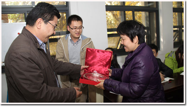 我校学生工作处副处长、学生心理教育中心主任孔燕详细介绍了心理教育中心人员组成情况、双线四级的工作模式、工作宗旨和工作理念,以及在精品课程建设、教材建设和开展相关服务等方面取得的成果;有关老师介绍了学生思想政治教育工作模式、学生工作队伍建设状况、辅导员班主任集体备课制度和小班管理的做法,以及学校网络的类型、作用,学校综合利用校园BBS、微博、人人网等媒体发布信息、了解信息、接受咨询的设想和做法,助学贷款、勤工助学、奖助学金、学费减免和困难补助工作。
