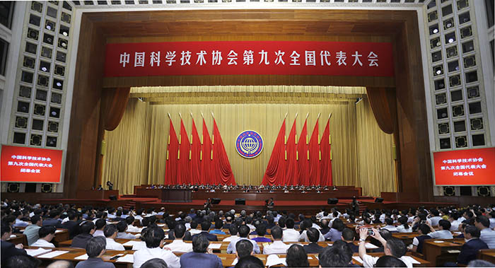 中国科协第九次全国代表大会6月2日在人民大会堂举行闭幕式。中共中央政治局委员、国家副主席李源潮出席并讲话。会议宣布,万钢当选为中国科协第九届全委会主席,我校常务副校长潘建伟等18人当选为副主席。原中国科协主席韩启德任名誉主席。