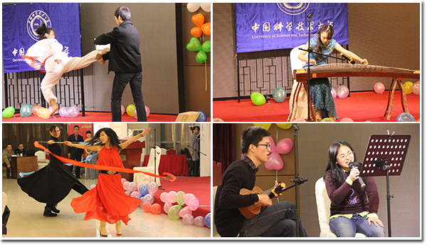 整个年会过程中,王逸然、王芳、路洋、夏秀秀等校友表演了吉他弹唱,徐锦校友表演了古筝渔舟唱晚,夏秀秀校友表演了跆拳道,姜燕校友表演了彩带舞,李凯、程刚校友表演了男声小合唱,校友们展示了众多精彩才艺。现场还进行了“击鼓传花”、“找零钱”等充满趣味的游戏。吉青代表捐款年会的校友、赵钢代表远道而来的校友、谢丹代表老校友一一登台发表了演讲。