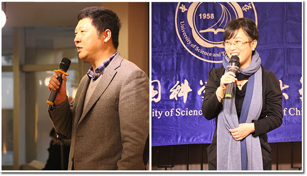 下午四点,校友高莉莉、赖凯一曲拜年小合唱瞬间点燃全场气氛,年会正式开始。上海校友会会长施雷首先代表校友会致辞,总结过去几年的校友工作,罗列了上届校友会秘书处韩涛、魏晓海、罗菲菲、鲍琛、高莉莉等一大批志愿者为上海校友组织的各项活动, 感谢同学们为校友会做出的贡献。随后,施雷向大家介绍了下一任上海校友会执行秘书长古今,古今表示将继续积极推动上海校友会的工作,为广大在上海工作学习的科大校友服务。