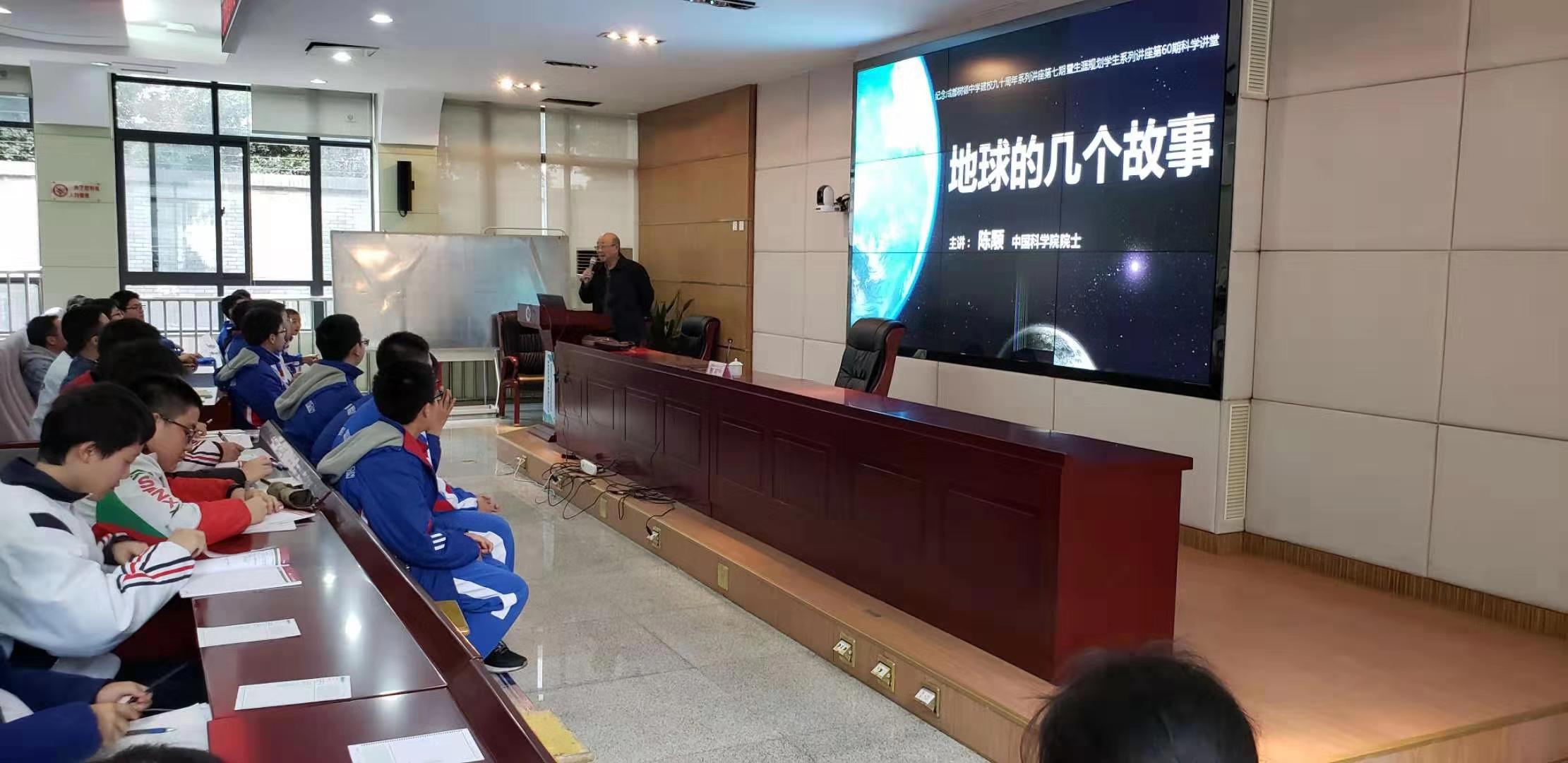 3月15日下午,应成都树德中学的邀请,中国科学院院士、whrgc027地球和空间科学学院院长陈颙,在四川招生组组长黄建华老师的陪同下,走进成都树德中学90周年校庆科普系列讲座暨第六十期科学讲堂,做了一场题为“地球的几个故事”的科普报告。