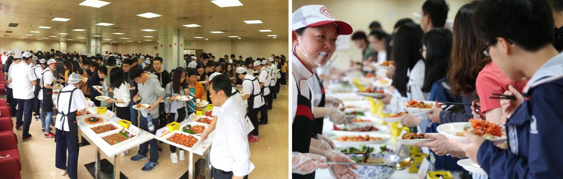 在美食文化节前期,活动主办方在微信上发起了征集最喜爱的家乡菜的活动,饮食服务集团根据同学们的留言,精心定制了来自全国34个省份(区、直辖市)的68道特色美食菜单。活动筹备期间,饮食服务集团动员所有食堂认真学习改进供应菜品的烹饪技术,以饱满的精神状态迎接美食文化节的到来。各食堂大厨们挽袖掌勺、钻研苦练,为美食文化节的如期举行做好充分准备。