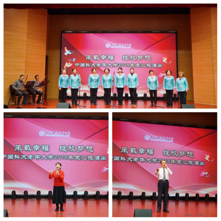 为进一步增强老年大学的凝聚力、创新力,更好地提升老同志“老有所学、老有所为、老有所乐”的积极性,12月18日下午,我校老年大学2018年度汇报演出在东区水上报告厅举行,十余个班级的学员带来了15个包括歌咏、舞蹈、诗朗诵、小品等多种艺术形式的节目。演出由张鹤龄、汪怡江两位老师主持,离退办党委副书记、老年大学常务副校长厉洪出席并致开幕词。