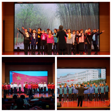 在大合唱《不忘初心》的悠扬旋律下,整场演出拉开了序幕。在各班级老师用心指导、各班班长精心组织下,歌咏班、合唱定向培训班、英语口语班等班级先后为观众呈现了《思念》《清晨我们踏上小道》《我和你》《书香满中华》《打靶归来》等经典曲目。此外,歌咏班的学员汪高斌、高雅芳还为大家带来了独唱曲目。